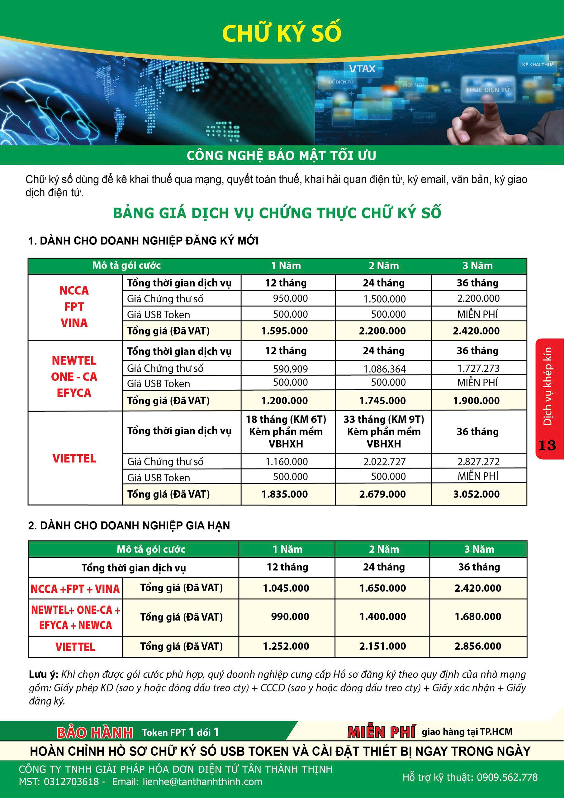 Bảng giá dịch vụ chữ ký số Tân Thành Thịnh